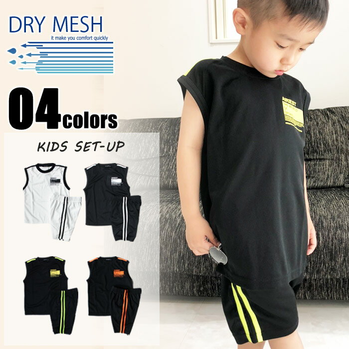 【送料無料】 NEXT WALL キッズ セットアップ ノースリーブ Tシャツ ハーフパンツ 半ズボン 子供服 男の子 ネオンカラー ティーシャツ サイドライン 上下セット 吸汗速乾 ボーイズ ジュニア ダンス 110cm 120cm 130cm 140cm 150cm 160cm 「530-10」
