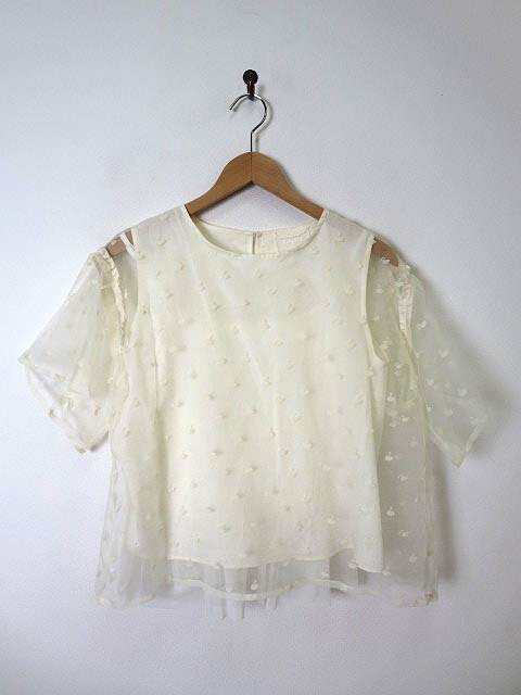 【中古】ティアラ Tiara チュニック 半袖 プルオーバー レイヤード キャミ付 シルク チュール切替 フリル L オフ白 レディース 【ベクトル 古着】 200327 ベクトルプレミアム店