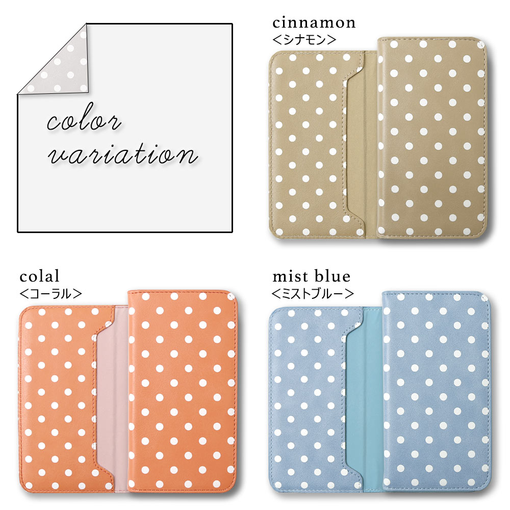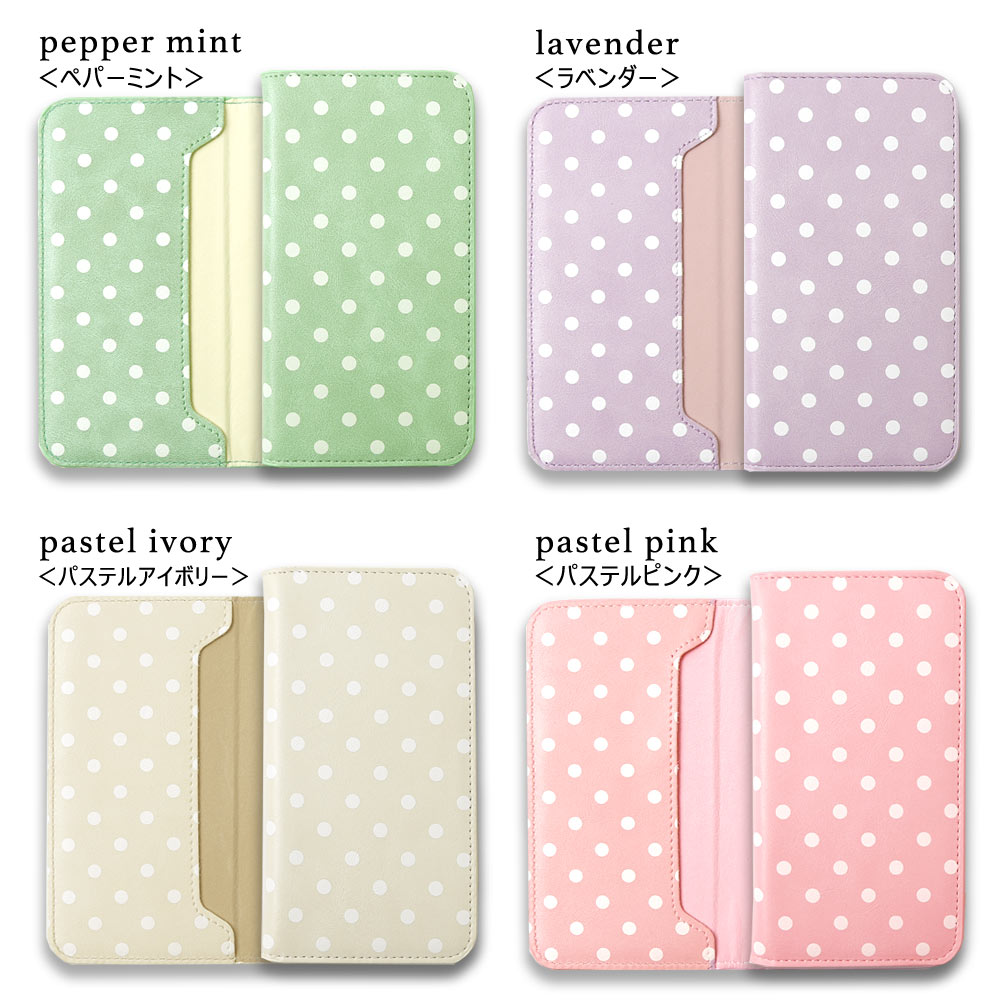 商品説明■知的で上品な小さめドット柄プリント手帳型ケース女性らしいドット柄デザインに、やわらかいパステルカラーを合わせたスマホケースです。